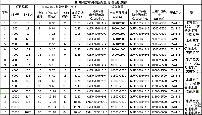2.1、消毒标准:出水粪大肠菌群不超过1×103 MPN /L(一级A标);出水粪大肠菌群不超过1×104 MPN /L(一级B标)(30天几何平均值)。
