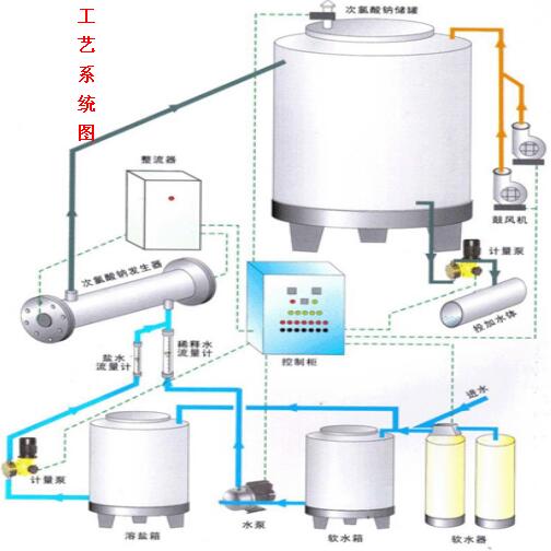 次氯酸钠由电解食盐法制备。我司的次氯酸钠发生器由若干个系统组成,包括软水制备、溶盐系统、盐水精制系统、稀盐水配置系统、次氯酸钠发生、次氯酸钠贮存系统、排氢系统、酸洗系统、次氯酸钠投加及配电控制系统。